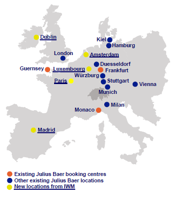 2013 wird das grosse Jahr der Integration für Julius Bär. Bisher wurde erst der Schweizer Standort des International Wealth Management von Merrill Lynch übernommen. Bis Ende Jahr sollen insgesamt elf neue Standorte hinzukommen und zehn bestehende Bereiche auf Grund des Zukaufs des IWM-Geschäfts erweitert werden.