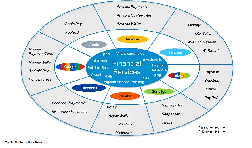 Zurück zu den digitalen Ökosystemen: Es ist nicht so, dass es keine internationalen Finanzdienstleister gibt, die solches schon aufgebaut haben. Nur sind es keine traditionellen Finanzdienstleister, sondern Internetunternehmen, welche die Chancen in diesem Bereich packen.