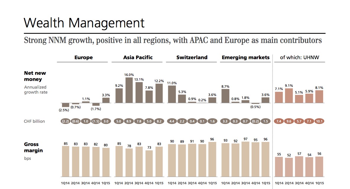 Dieser Trend ist nun gebrochen, zumindest bei der UBS. Die Bank konnte im ersten Quartal 2015 einen signifikanten Neugeldzufluss in Europa verbuchen. Geht das so weiter, kann die Vergangenheitsbewältigung definitiv ad acta gelegt werden.