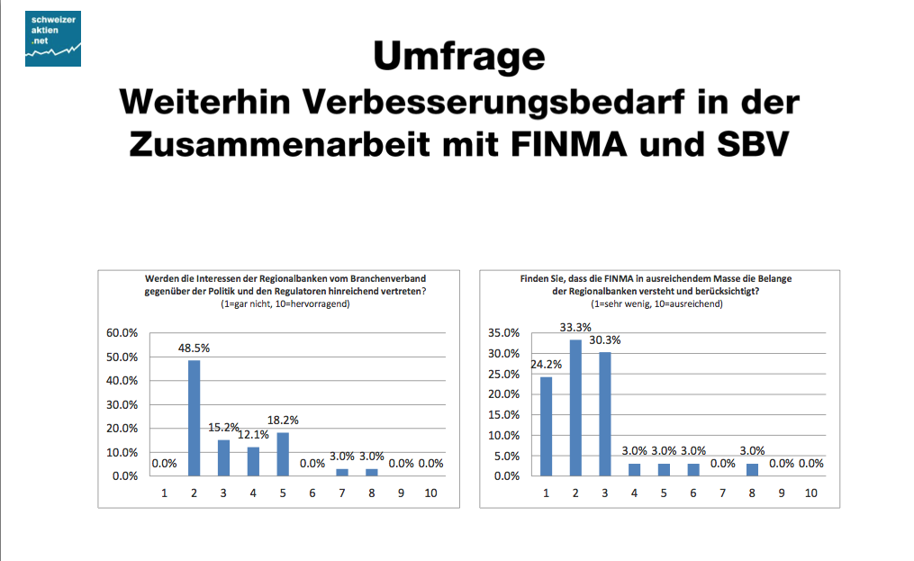 Die SBVg würde die speziellen Bedürfnisse und Eigenheiten der Regionalbanken regelrecht marginalisieren, heisst es in der «Branchenanalyse Regionalbanken 2015» weiter. Dabei handelt es sich um eine Umfrage von «schweizeraktien.net», einer Online-Investitionsplattform für Nebenwerte.