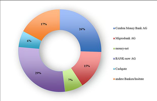 Diese und andere Daten hat Patrick Fernandes im Rahmen einer Bachelorarbeit am Institut für Finanzdienstleistungen Zug (IFZ) von der Hochschule Luzern erhoben. Dabei wurden die Konsumkreditbestände der einzelnen Marktteilnehmer aus den Geschäftsberichten 2014 genommen und ins Verhältnis zum gesamten ausgewiesenen Konsumkreditvolumen per Ende 2014 gesetzt.