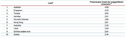 Abgesehen haben es die Cyberkriminellen vorab auf im Internet verfügbare Bankdienstleistungen. «Vor allem in Ländern, in denen Online-Banking sehr beliebt ist, machen Banktrojaner den Nutzern zu schaffen», warnt Kaspersky (siehe Tabelle unten).