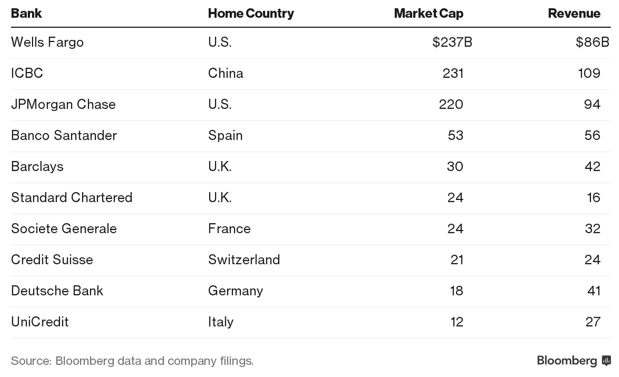 Ein Zusammenschluss der beiden Institute würde eine Marktkapitalisierung von rund 260 Milliarden Dollar auf die Waage bringen (siehe Tabelle).