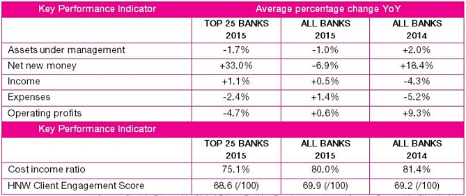 Das Wachstum dieser beiden China-Banken ist insofern beachtlich, als dass die Kundenvermögen aller 25 aufgeführten Institute trotz beachtlichen Neugeldzuflüssen im Vergleich zum Vorjahr leicht rückläufig waren (siehe nachstehende Tabelle).