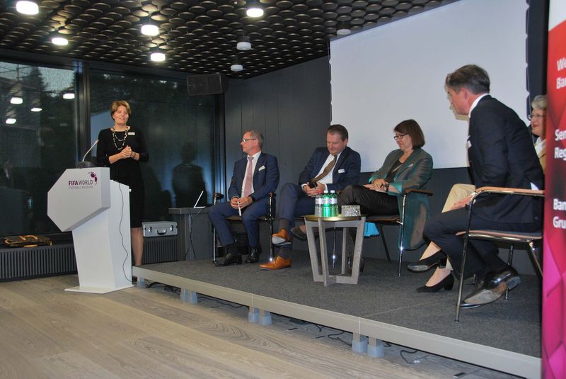 Nach einem eindrucksvollen Rundgang durch das neue Museum des Weltfussball-Verbands zeigte Finma-Verwaltungsrätin Renate Schwob in ihrem Impuls-Referat die zukünftigen Herausforderungen für den Finanzplatz Schweiz auf. Hier sind einige Impressionen: