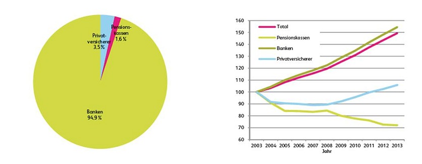 Diese Entwicklung rührt daher, dass Hypotheken für Pensionskassen im Vergleich zu Obligationen über längere Zeit ein schlechteres Risiko-Rendite-Verhältnis aufwiesen. Es gab deshalb auch Vorsorgeeinrichtungen, wie die Pensionskasse des Bundes Publica, die ihr Hypothekargeschäft 2012 an die Berner Kantonalbank abstiessen – ein Entscheid, den das Institut heute wohl bitter bereut.