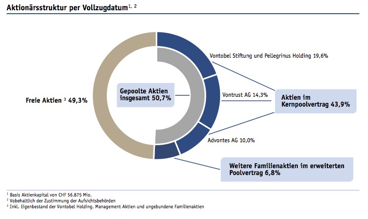 Im Rahmen der Neustrukturierung wird ein Folgepool gebildet, bestehend aus einem Kernpool und einem erweiterten Pool, der insgesamt 50,7 Prozent der Aktienstimmen vereinigt, wie Vontobel am Dienstag mitteilt.