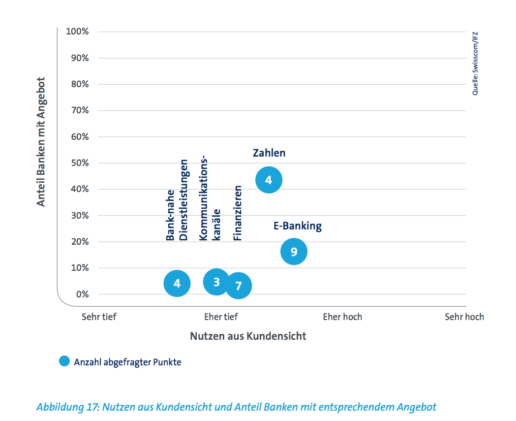 Entsprechend raten die Studien-Autoren den Banken – ganz untypisch im Fintech-Hype – zu einem behutsamen Vorgehen. Viele der derzeit lancierten oder angekündigten digitalen Angebote richten sich gemäss der Umfrage eher an eine kleine Anzahl Zielkunden, geben sie zu bedenken. «Für einige dieser Nischenprodukte wäre es aus unserer Sicht ratsam, die Projekt- und Implementierungskosten von Beginn weg tief zu halten und die relevante Zielgruppe frühzeitig ins Boot zu holen.»