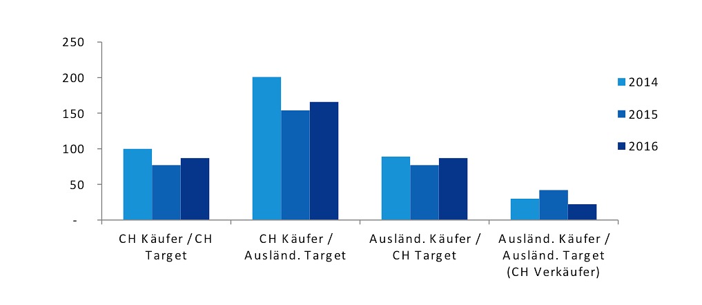 Der Vorstoss der Chinesen schürt derweilen auch Angst und die Rufe nach protektionistischen Massnahmen werden auch hierzulande lauter. Auf globaler Ebene betrachtet, kauften aber Schweizer Unternehmen zwischen 2014 und 2016 mehr ausländische Firmen auf als umgekehrt, stellt KPMG fest (siehe Grafik oben).