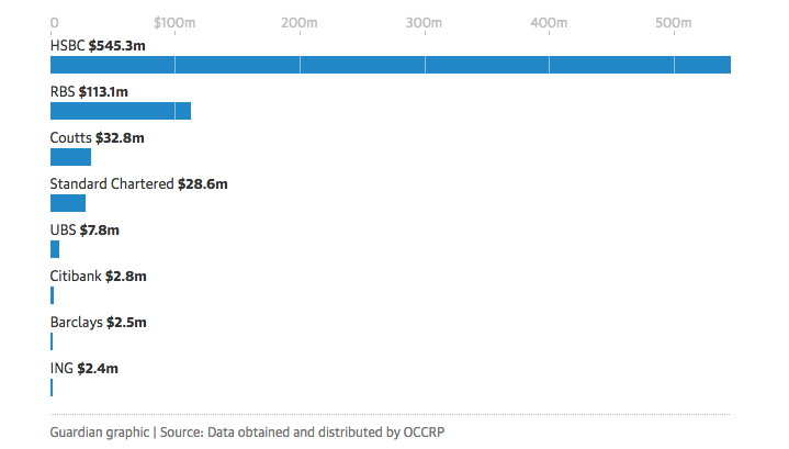 Doch die Geldströme reichen über Osteuropa hinaus zu zahlreichen Banken und Briefkastenfirmen in 96 Ländern weltweit. Eine besondere Rolle spielte dem Bericht zufolge London, ein beliebtes Zentrum für reiche Russen im Ausland. In der Themsestadt haben heimische Geldhäuaer wie die HSBC, aber auch die Schweizer UBS (siehe Grafik unten) offenbar bereitwillig inkriminierte Gelder entgegengenommen.