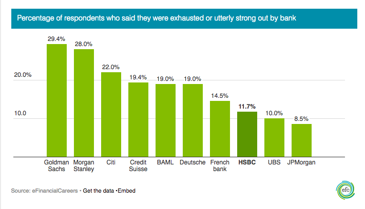 Nur jeder zehnte UBS-ler etwa fühlt sich vom Job erledigt, während fast jeder fünfte Credit-Suisse-Angestellte am Limit «läuft». Trotzdem: Ist der Umfrage zu trauen, dann dürfte die Welt die Swiss Banker um ihren Job beneiden.