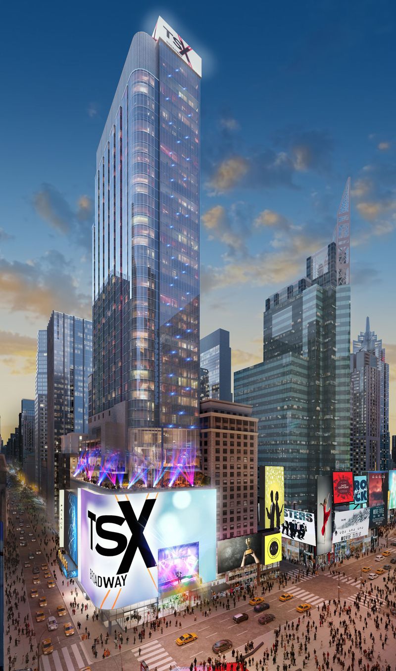 Über 1'600 Quadratmeter LED-Werbefläche, fast 7'000 Quadratmeter Verkaufsfläche, eine Outdor-Dining-Terrasse (Bild unten), ein Luxushotel mit 669 Zimmern und ein jetzt schon weltberühmtes Theater – das Projekt TSX Broadway hat einiges geplant.