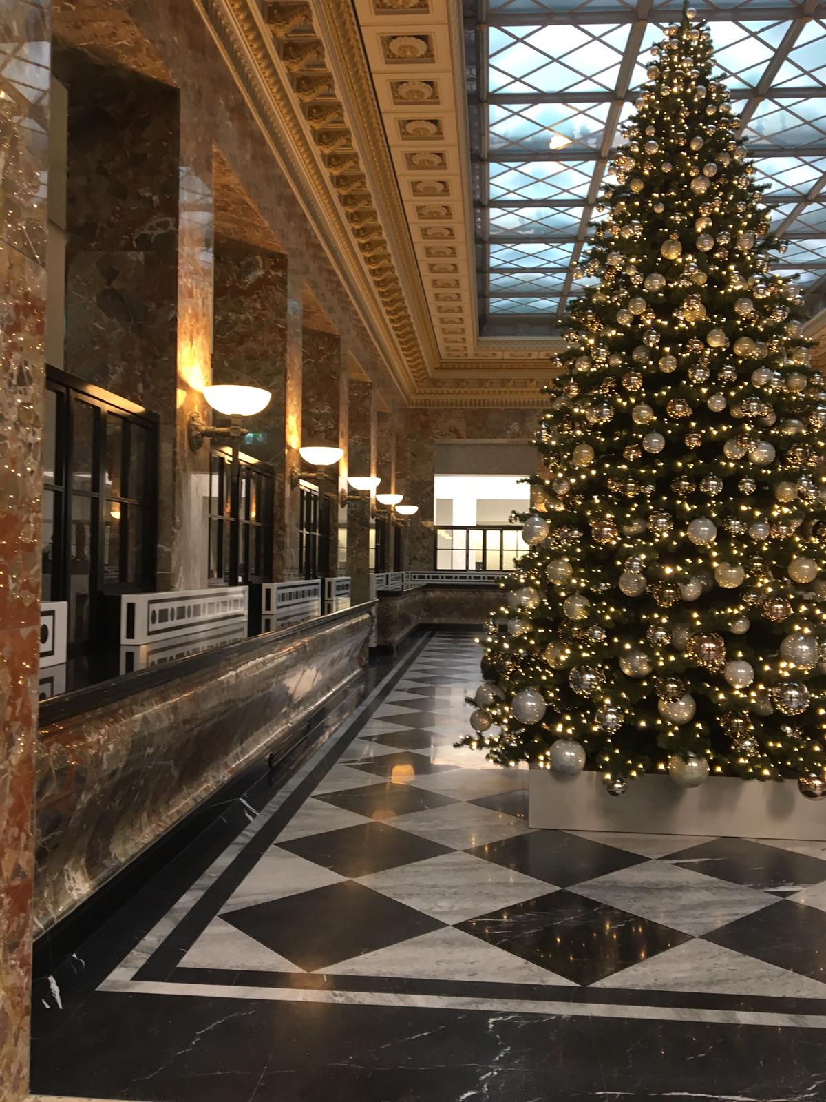 Im Unterschied zu den meisten Geschäften dekorieren sie ihre Fassaden kaum oder nur sehr zurückhaltend. Einzig der Christbaum in der Lobby darf mancherorts nicht fehlen, wie das Beispiel der Bank Cler (Bild unten) zeigt.