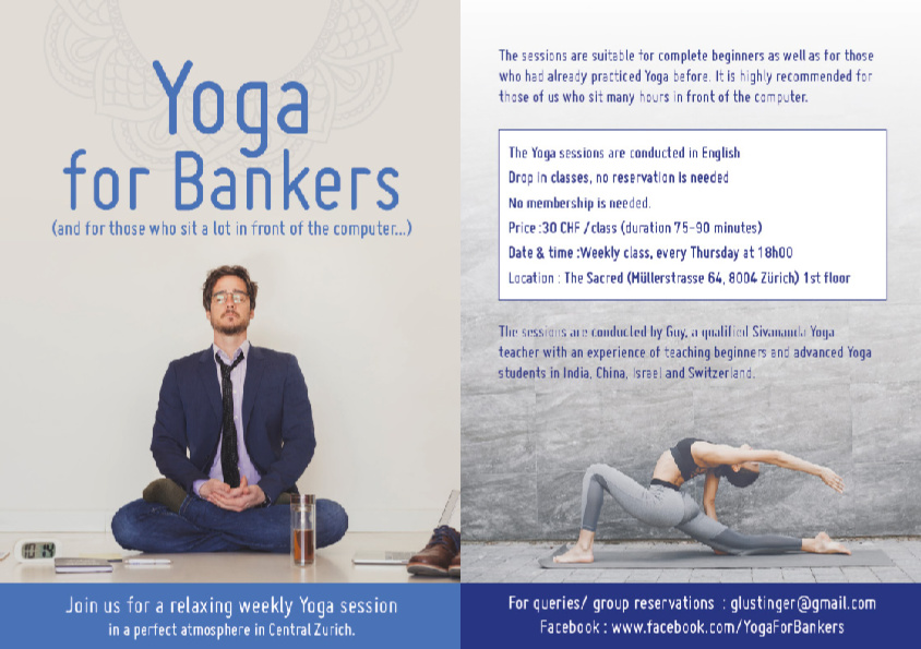 Wie Guy Lustinger, KYC- (Know Your Customer, also Compliance-) Spezialist bei der Credit Suisse, später gegenüber finews.ch erzählen wird, hat er die Flyer auf den Tischen verteilt, um sein neues Programm, «Yoga for Bankers» zu bewerben.