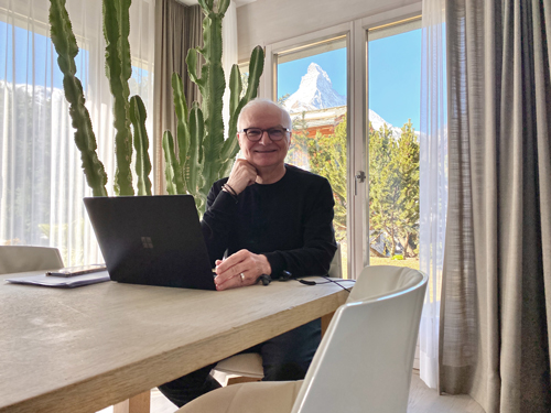 «Trotz Homeoffice ist es unerlässlich für Partner und Kunden da zu sein. Darum ist täglich ein kleiner Teil der Mitarbeiter vor Ort im Büro. Dies ist der Grund, weshalb ich weiterhin jeweils am Montagmorgen (habe dann ein ganzes SBB-Abteil für mich allein) von Zermatt nach Zürich reise, um am Dienstagnachmittag zurück ins Homeoffice zu kehren – mit freier Sicht aufs Matterhorn.»