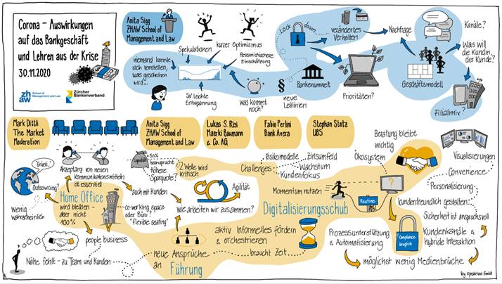 Der Finance Circle, eine Bildungsveranstaltung der School of Management and Law (SML) der Zürcher Hochschule für Angewandte Wissenschaften (ZHAW) in Zusammenarbeit mit den Zürcher Bankenverband befasste sich damit, was Führungskräfte und vor allem auch Mitarbeitende in diesem Wandel besonders beschäftigt, und was die Auswirkungen und die vorläufigen Lehren aus der Krise sind.