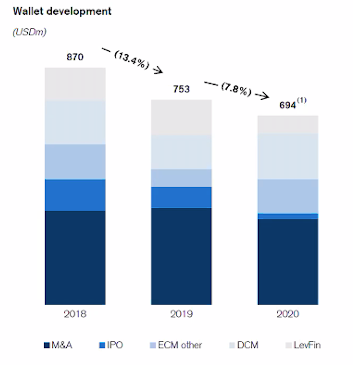 Den schon vor dem «Corona-Jahr» war das Investmentbanking-Volumen im Heimmarkt rückläufig. So ging das Volumen im Business nach den Rekordtransaktionen der Vorjahre zwischen 2018 und 2019 zweistellig zurück. Im Jahr 2020 mussten die Akteure nochmals eine Abnahme um 7,8 Prozent verschmerzen (siehe Grafik unten).