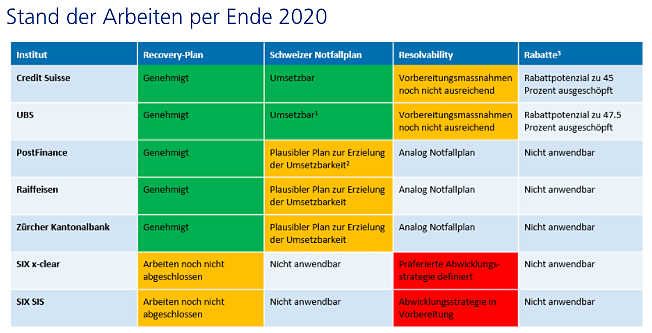 Grundsätzlich hat die Finma aber Recovery-Pläne der systemrelevanten Banken hat auf dem Stand von 2019 im Jahr 2020 genehmigt.
