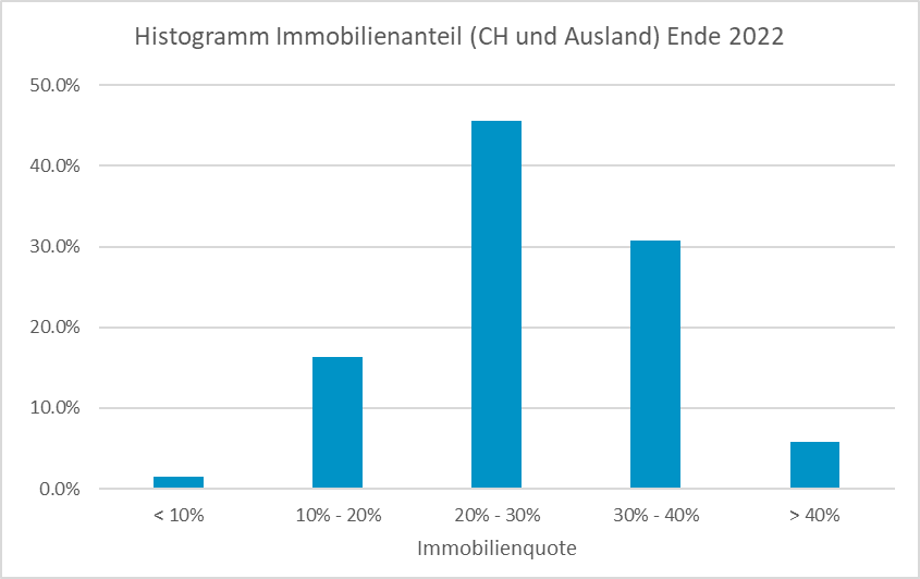 Complementa hat gut 150 Entscheidungsträgerinnen und -trägern der beruflichen Vorsorge speziell zur Problematik befragt; der CEO weiss deshalb ziemlich genau, in welche Richtung die Branche läuft. Per Ende 2022 lag der Immobilienquote im Schnitt bei 24,1 Prozent, 3 Prozentpunkte höher als im Vorjahr.