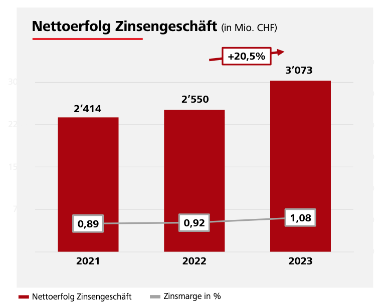 Damit befindet sich die Grossbank hierzulande in guter Gesellschaft. Die allermeisten Inlandbanken haben dank den hohen Erträgen im Zinsengeschäft im vergangenen Geschäftsjahr einen Gewinnsprung hingelegt. Zu verdanken hat die Branche dies vorab der Abkehr der Schweizerischen Nationalbank (SNB) von den Negativzinsen.