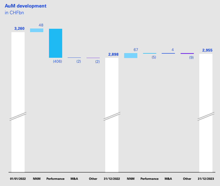 Entwicklung der Assets under Management von 73 Privatbanken zwischen 01.01.2022 und 31.12.2023. Für grössere Darstellung Bild anklicken. (Bild: KPMG Schweiz)