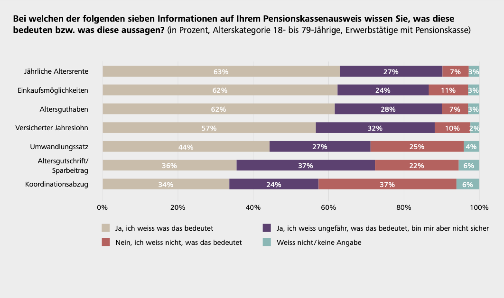 Besonderes Augenmerk legt die diesjährige Erhebung auf die berufliche Vorsorge. Für viele Versicherte bleibt die 2. Säule eine Blackbox. Zwar verstehen über 60 Prozent Grundbegriffe wie Altersguthaben, doch nur knapp die Hälfte weiss, was der Umwandlungssatz bedeutet. Teilzeitbeschäftigte schneiden besonders schlecht ab. Auch beim «dritten Beitragszahler» bestehen Defizite: Weniger als 40 Prozent wissen, dass Pensionskassen mit Anlageerträgen einen wesentlichen Teil der Leistungen finanzieren. «Es gibt nicht nur eine Wissenslücke, sondern einen Handlungsbedarf», sagt Altwegg und betont: «Für Raiffeisen ist es enorm wichtig Aufklärung zu betreiben. Altersvorsorge ist ein Thema, das alle bewegt.»