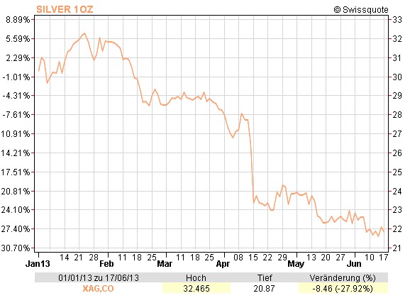 Seit Jahresbeginn verlor eine Silber-Unze rund 28 Prozent an Wert. Demgegenüber hat der Goldpreis in der selben Zeit «nur» um 17,4 Prozent an Wert eingebüsst. Daher suchen Silber-Fans nach Gründen für den starken Wertzerfall des Edelmetalls. Denn Silber gelte als bester Inflationsschutz, sagt Rohstoff-Experte Thorsten Schulte gegenüber der deutschen Zeitung «Die Welt».