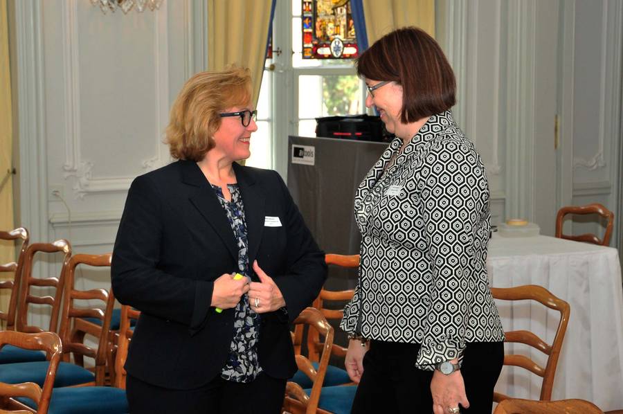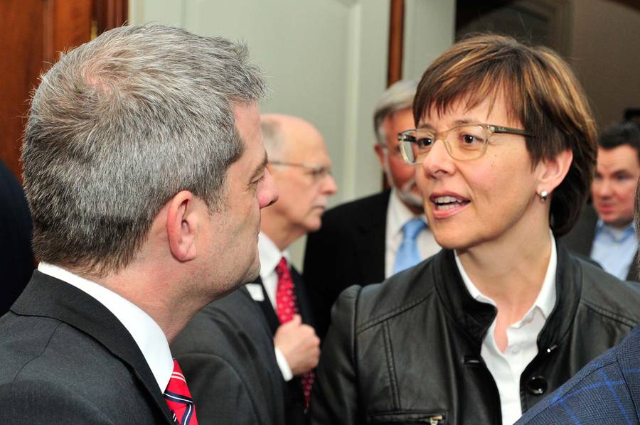 Die anschliessende Roundtable-Gesprächsrunde mit Charlie Matter, CEO Finnova, Dr. Beat Oberlin, CEO Basellandschaftliche Kantonalbank, Joe Rickenbacher, Verwaltungsrat FINMA, Maya Salzmann, Verwaltungsrätin Notenstein Privatbank, Professor Tobias Straumann, Universität Zürich und Corin Ballhaus, Moderatorin, Inhaberin Ballhaus Wording, vertieften im Austausch mit den geladenen Gästen verschiedene Aspekte des Themas.