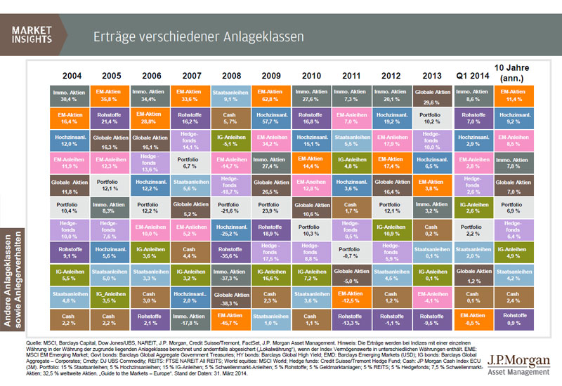 J.P. Morgan Asset Management hat Guide to the Markets entwickelt, um Kundenberater und professionelle Anleger zu unterstützen, immer auf dem neuesten Stand der Märkte zu sein. Guide to the Markets spiegelt aktuelle volkswirtschaftliche Entwicklungen und das Marktgeschehen an den internationalen Finanzplätzen produktunabhängig und anbieterneutral wider. Die Charts und Tabellen helfen, schnell und unkompliziert einen umfassenden Überblick zu erlangen. Für weitere Informationen klicken Sie bitte hier.