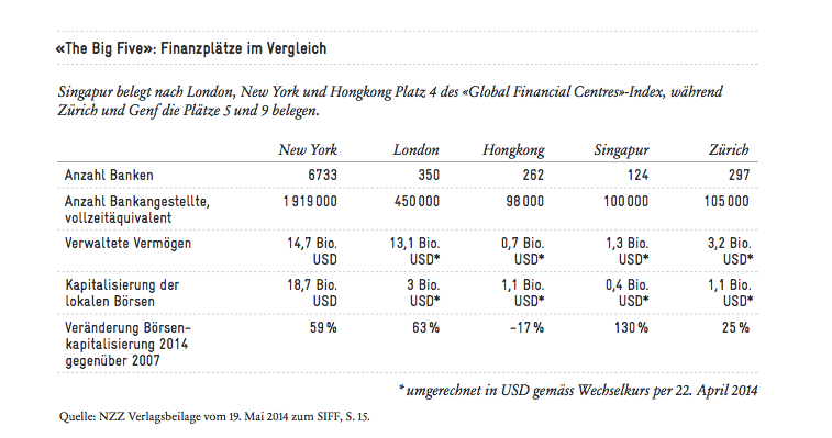 «Vor diesem Hintergrund ist es zu begrüssen, dass die Schweiz 2013 den Kontakt mit Singapur und Hongkong aufgenommen hat, um einen vertieften Dialog in Finanzmarktfragen zu führen», kommt Walser zum Schluss.