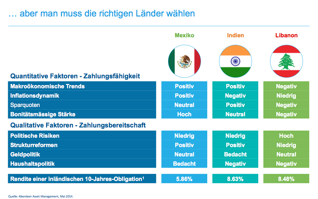 Natürlich gibt es Schwellenländer, die durch ihre höheren Defizite anfälliger sind. Diese Diskrepanz der Entwicklung und der Finanzlage zwischen den einzelnen Schwellenländern zeigt, wie wichtig intensives Research ist, um die Spreu vom Weizen zu trennen.