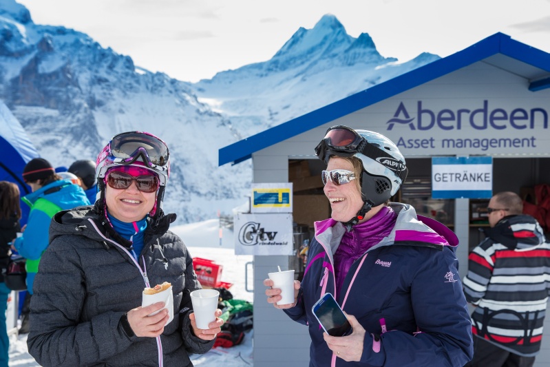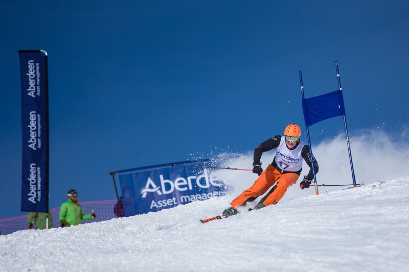 Bessere Bedingungen hätten sich die Organisatoren und Teilnehmer nicht wünschen können: Beim ersten Riesenslalomlauf im Gebiet First-Oberjoch erwarteten sie blauer Himmel, strahlender Sonnenschein und perfekte Pistenverhältnisse. Insgesamt nahmen 74 Teams am Rennen teil, unter anderem auch Mitarbeiterinnen und Mitarbeiter von Aberdeen Asset Management, der Credit Suisse, dem UBS Fondscenter sowie von der Berner Kantonalbank.