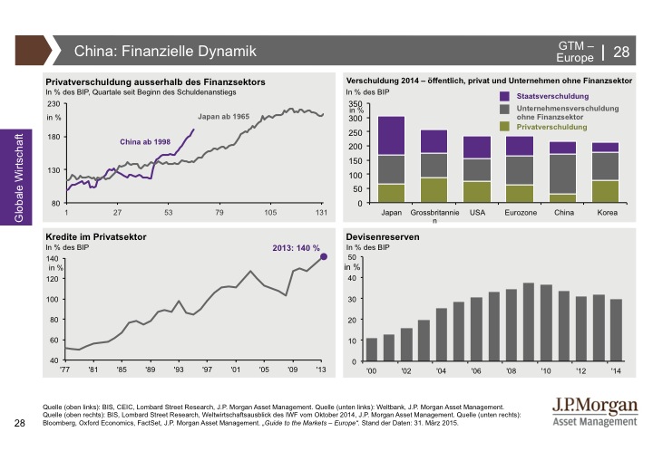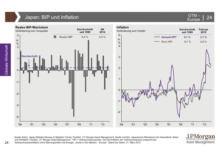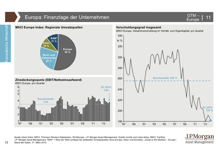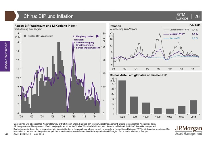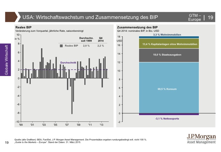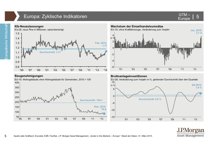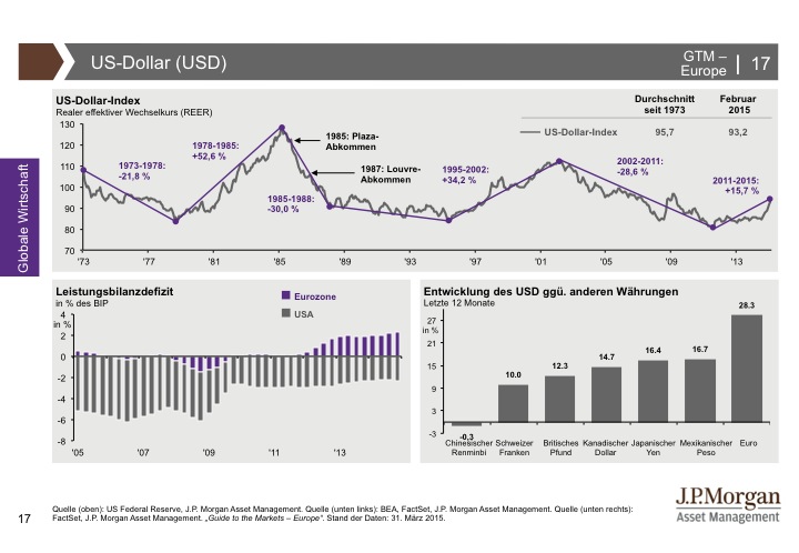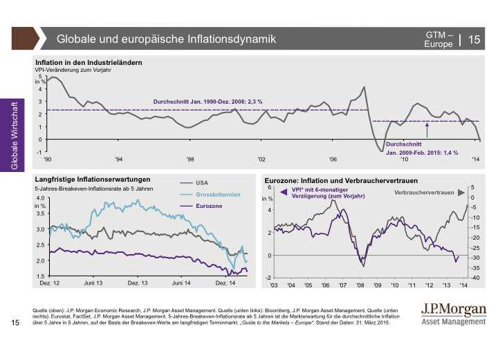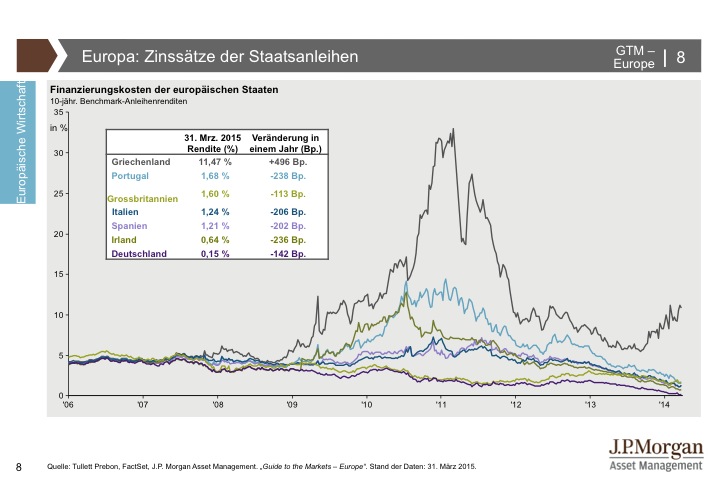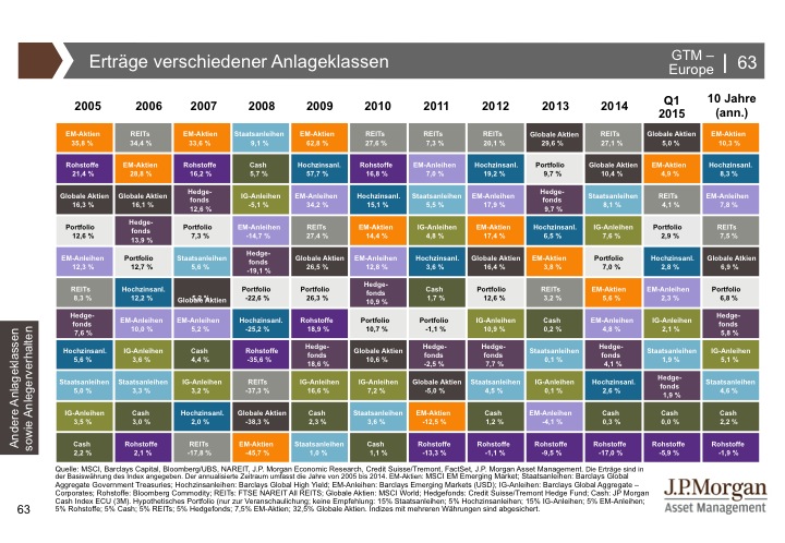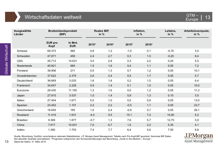 J.P. Morgan Asset Management hat den Guide to the Markets entwickelt, um Kundenberater und professionelle Anleger zu unterstützen, immer auf dem neuesten Stand der Märkte zu sein. Der Guide to the Markets spiegelt aktuelle volkswirtschaftliche Entwicklungen und das Marktgeschehen an den internationalen Finanzplätzen produktunabhängig und anbieterneutral wider. Die Charts und Tabellen helfen, schnell und unkompliziert einen umfassenden Überblick zu erlangen. Für weitere Informationen klicken Sie bitte hier.