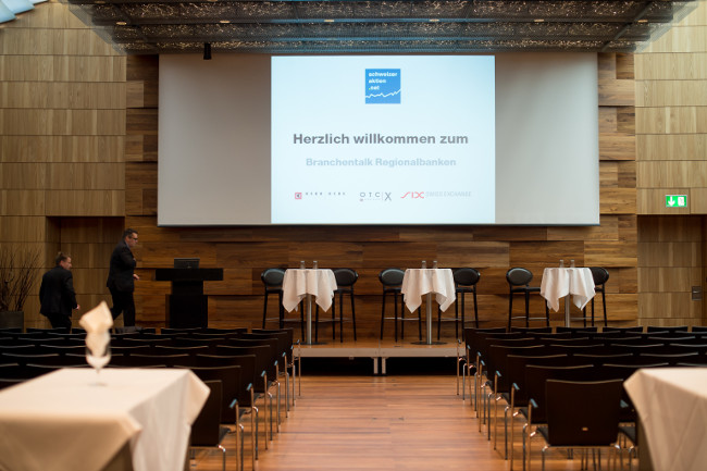Nach der Einführung durch Björn Zern, Gründer und CEO von schweizeraktien.net, einem Investmentportal für Schweizer Nebenwerte, präsentierten zwei Regionalbanken-Vertreter ihre Geschäftsmodelle: David Sarasin, CEO der Bank Linth, sowie Oliver Jaussi, CEO der Bank Zimmerberg.