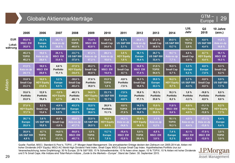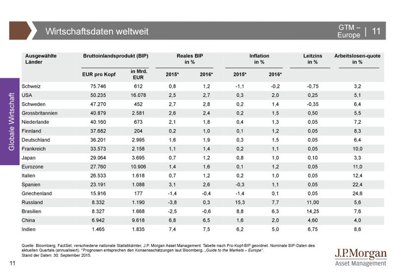 Den «Guide to the Markets» hat J.P. Morgan Asset Management entwickelt, um Kundenberater und professionelle Anleger zu unterstützen, immer auf dem neuesten Stand der Märkte zu sein.