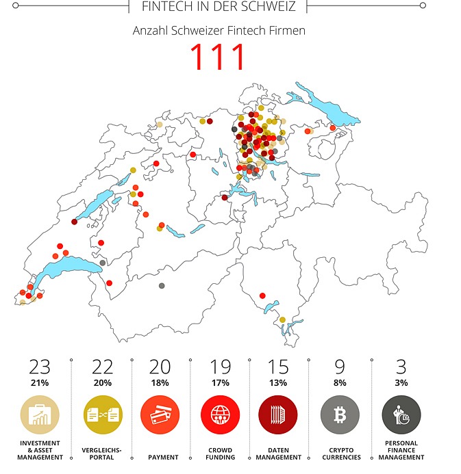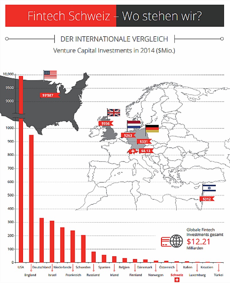 Mit 111 Fintech-Unternehmen steht die Schweiz im internationalen Vergleich demnach überraschend gut da: Gemäss der Auszählung ist demnach jedes elfte Fintech-Unternehmen der Welt in der Schweiz angesiedelt. Das praktisch nicht vorhandene Risikokapital war kein Hinderungsgrund für die Entwicklung der Branche, die offenbar andere Finanzierungsquellen nutzt.