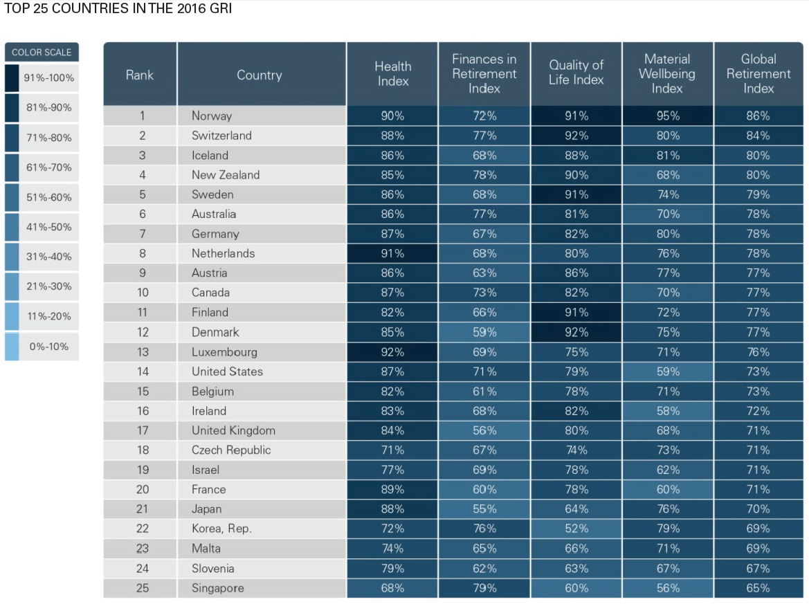 Dass die Schweiz es nicht mehr an die Spitze schaffte, hängt damit zusammen, dass sie in den Kategorien Gesundheit sowie materieller Wohlstand leicht schlechter abschnitt als Norwegen. Demgegenüber können sich die Schweizerinnen und Schweizer an einer insgesamt höheren Lebensqualität erfreuen sowie an einer besseren finanziellen Situation im Pensionsalter – offenbar genügten diese Vorzüge nicht, um den Spitzenplatz zu verteidigen.