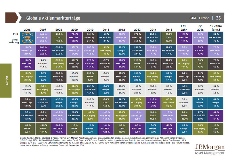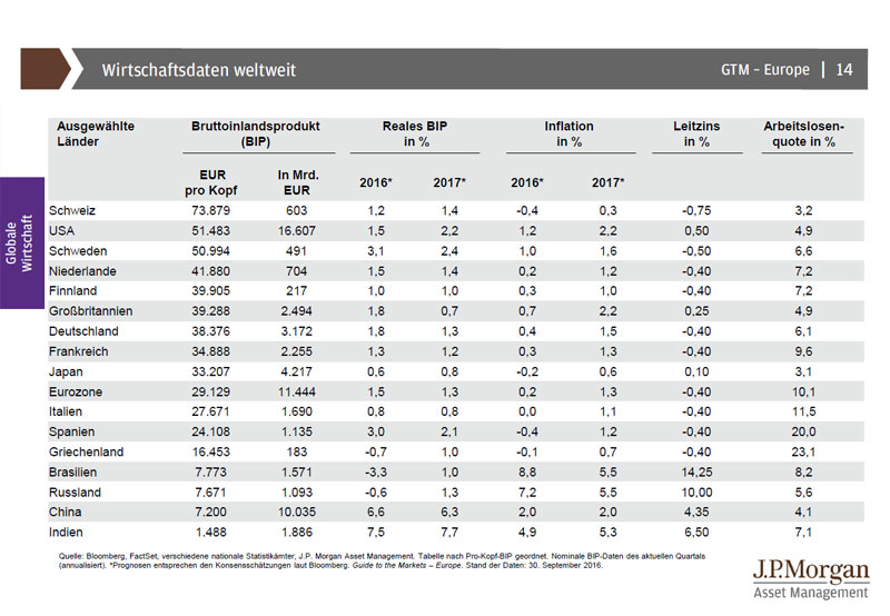 Den «Guide to the Markets» hat J.P. Morgan Asset Management entwickelt, um Kundenberater und professionelle Anleger zu unterstützen, immer auf dem neuesten Stand der Märkte zu sein.