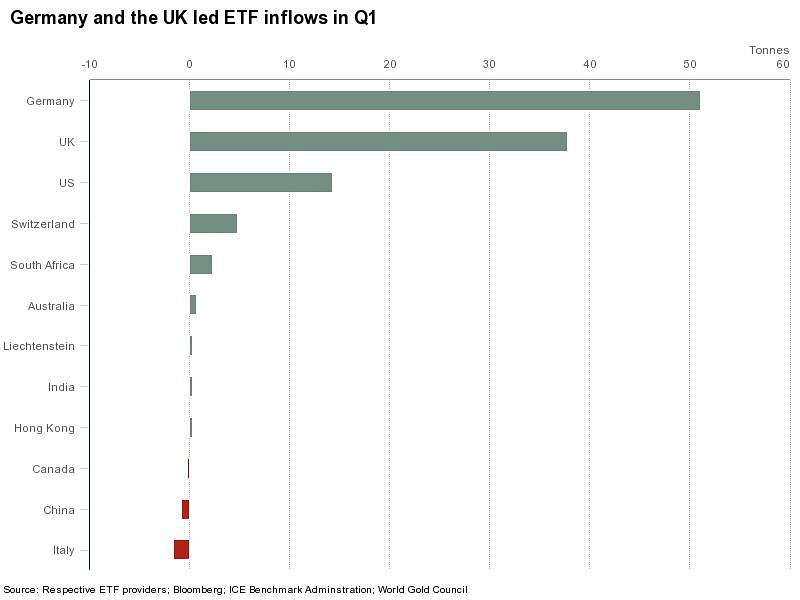 Gold-ETF bemerkten diese Nachfrageschwäche am stärksten: Mit 109,1 Tonnen hätten sich die Zuflüsse nur auf einen Bruchteil jener des Vorjahres belaufen, hiess es. Auch Notenbanken haben im ersten Jahresabschnitt deutlich weniger Gold gekauft, nämlich 76,3 Tonnen.