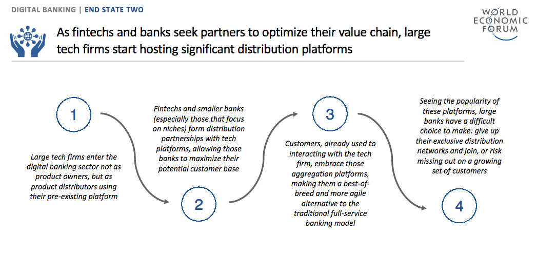 - Plattformen, über die Kunden in einem einzigen Kanal mit diversen Finanzdienstleistern in Kontakt treten, werden zum dominierenden Geschäftsmodell.