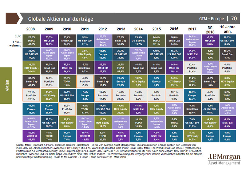 Den «Guide to the Markets» hat J.P. Morgan Asset Management entwickelt, um Kundenberater und professionelle Anleger zu unterstützen, immer auf dem neuesten Stand der Märkte zu sein.