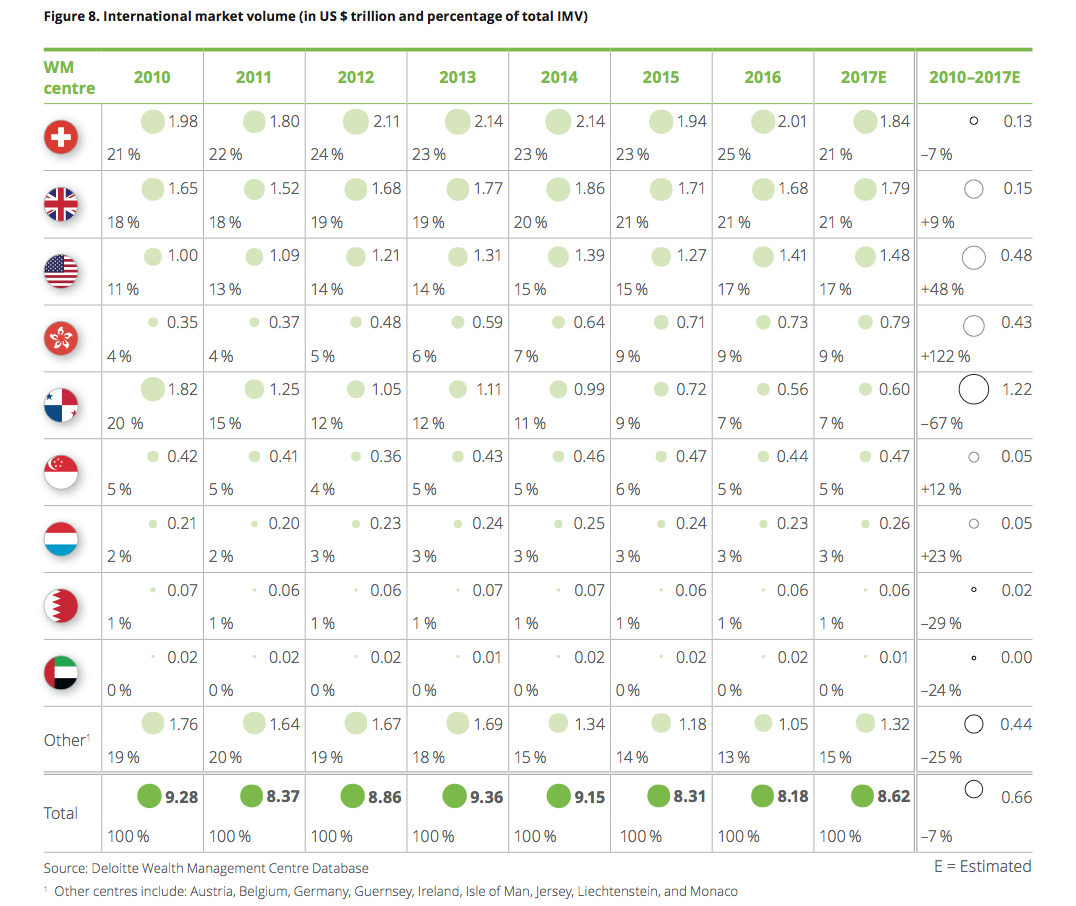 «Hongkong wächst viel schneller als Singapur», stellen die Deloitte-Experten denn auch fest. Die Geldschwemme hat der Finanzplatz ihrer Meinung nach vor allem Festlandchina zu verdanken, wo Hongkong als präferierte Destination für Auslandinvestments gilt und auch so manches Schlupfloch genutzt wird. So ist laut Deloitte der Anteil der in Hongkong investierenden reichen Chinesen von 19 Prozent im Jahr 2011 auf 56 Prozent im 2016 geklettert.