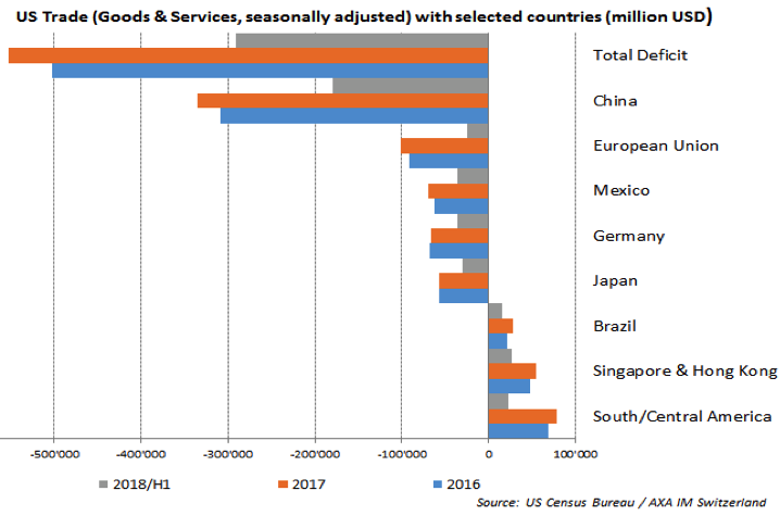 Seit geraumer Zeit bereits werden Investoren – in einer sonst nahezu perfekten Finanzmarktumgebung – von der protektionistischeren Haltung Amerikas auf Trab gehalten. Die chronische Unsicherheit in Bezug auf Amerikas Position zu internationalen Handelsfragen und das Unwort des Jahres «Handelskrieg» beeinflussen immer wieder das Geschehen in den verschiedenen Vermögensklassen und Währungspaaren.