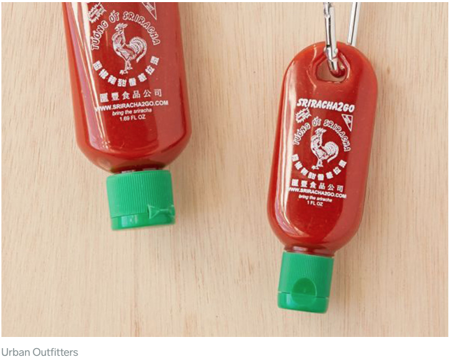 Für Menschen, die es gerne ein wenig schärfer mögen: Der Sriracha-Chillisauce-Schlüsselanhänger von Urban Outfitters. Für umgerechnet rund acht Franken kann Ihr Chef oder Ihre Chefin in Zukunft jede Mahlzeit mit Chillisauce übergiessen.