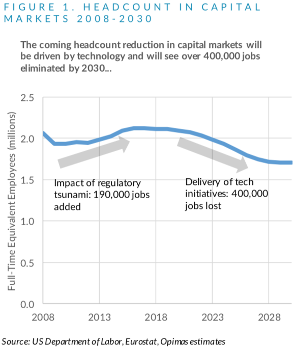 Glaubt man einer neuen Studie von Opimas, einem auf Finanzdienstleister spezialisierten Consulting-Unternehmen, sah es die letzten Jahre deutlich rosiger aus als in der Zukunft (Bild unten).