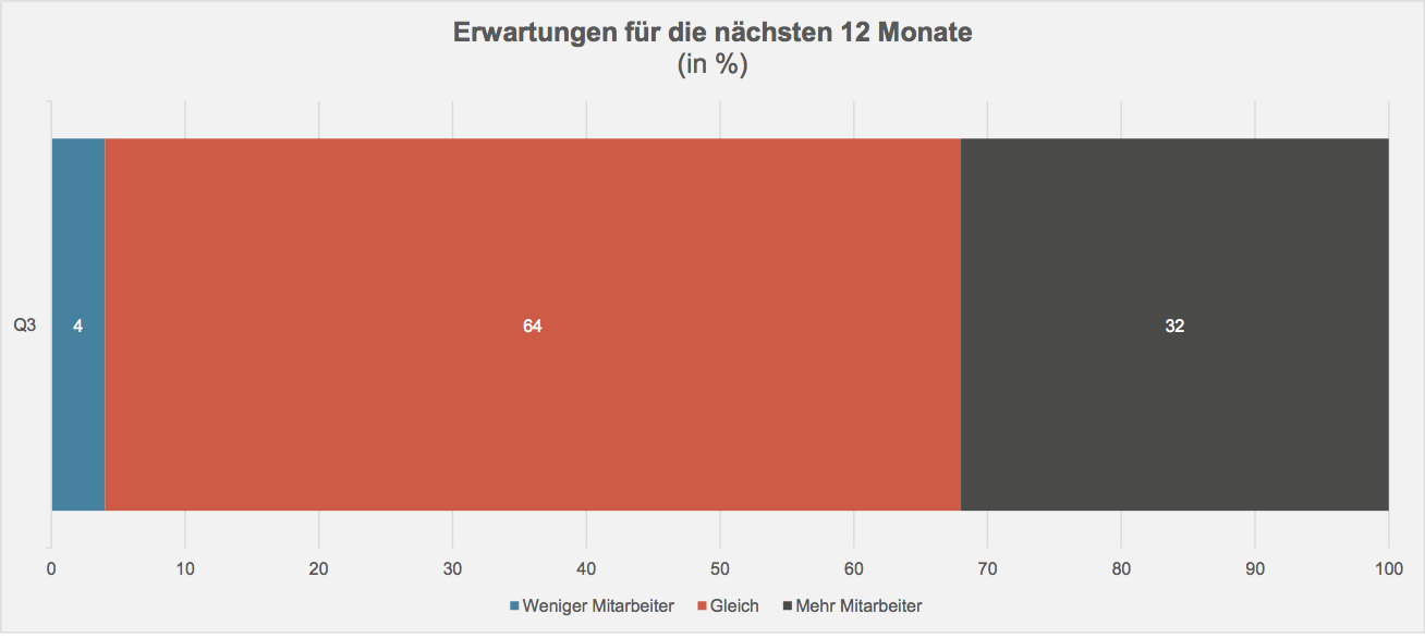 Die positiven Erwartungen stimmen die Vermögensverwalter ganz generell optimistisch. So erwarten insgesamt 44 Prozent der Umfrageteilnehmer eine positive oder sogar sehr positive Geschäftsentwicklung in den nächsten zwölf Monaten; 43 Prozent gehen von einer stabilen Entwicklung aus. Und unter diesen Prämissen will ein Drittel der befragten Vermögensverwalter zusätzliche Mitarbeiter engagieren, wie aus der aktuellen Erhebung weiter hervorgeht (vgl. Grafik).