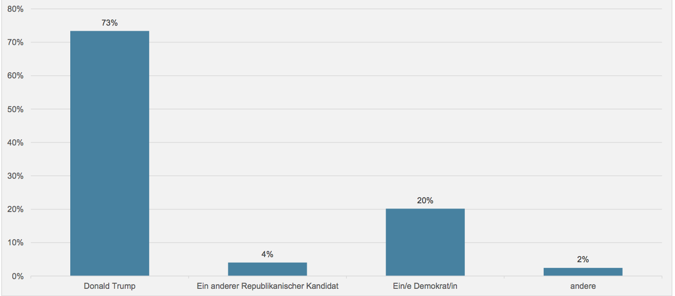 Die Meinungen sind offensichtlich gemacht: Gut 70 Prozent der Schweizer Vermögensverwalter erwarten im nächsten Jahr eine Wiederwahl von US-Präsident Donald Trump. Demgegenüber rechnen nur gerade 20 Prozent der Befragten mit einem Sieg der Demokratischen Partei (vgl. Grafik).
