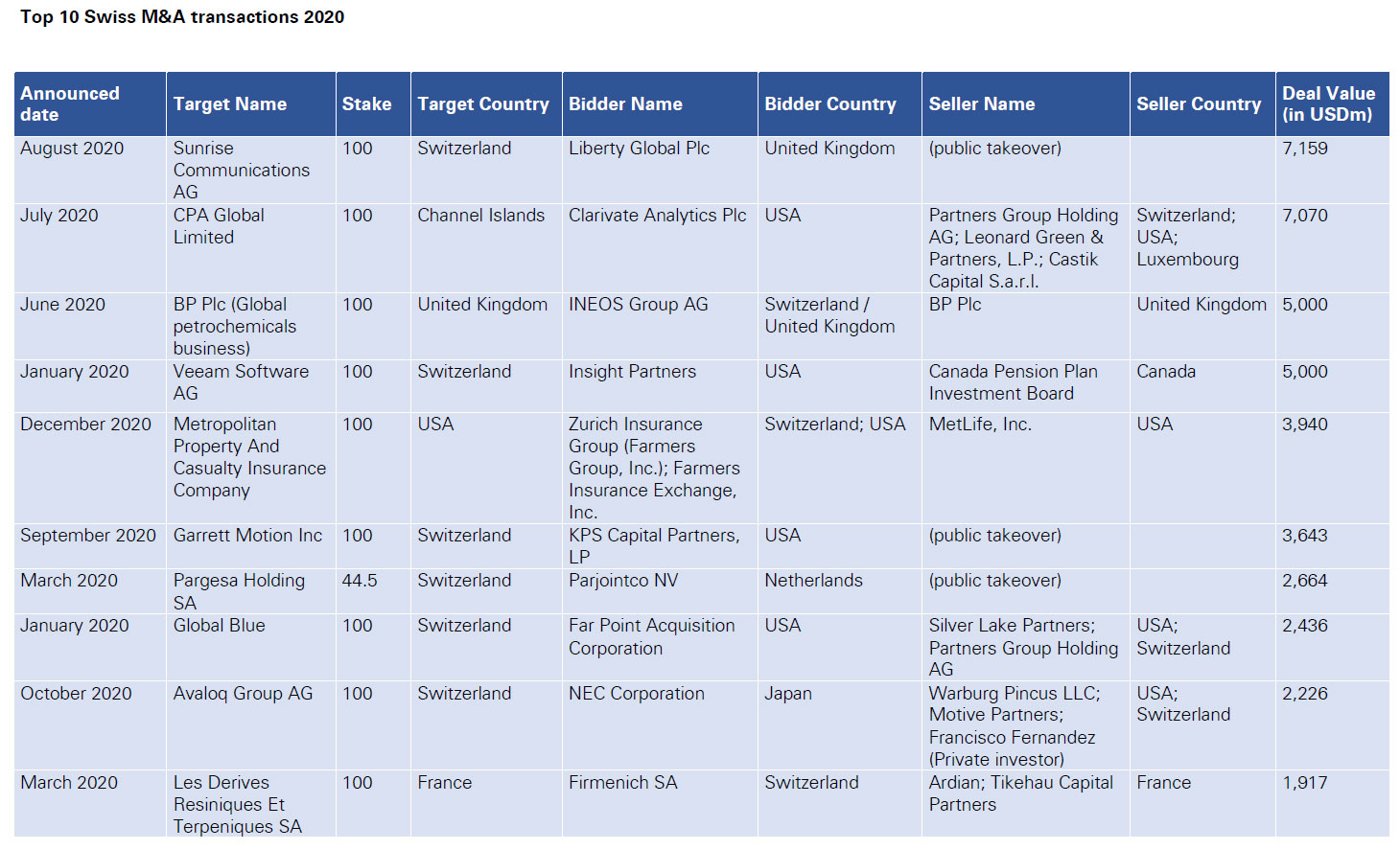 M&A 2020: Die grössten Deals mit Schweizer Beteiligung