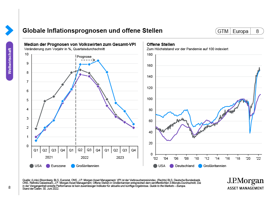 Es bleiben erhebliche Unsicherheiten bestehen, nicht zuletzt darüber, wann der Höhepunkt der Inflation erreicht sein könnte sowie über die Bereitschaft der Zentralbanken, die Inflation über dem Zielwert zu belassen (Seite 8).