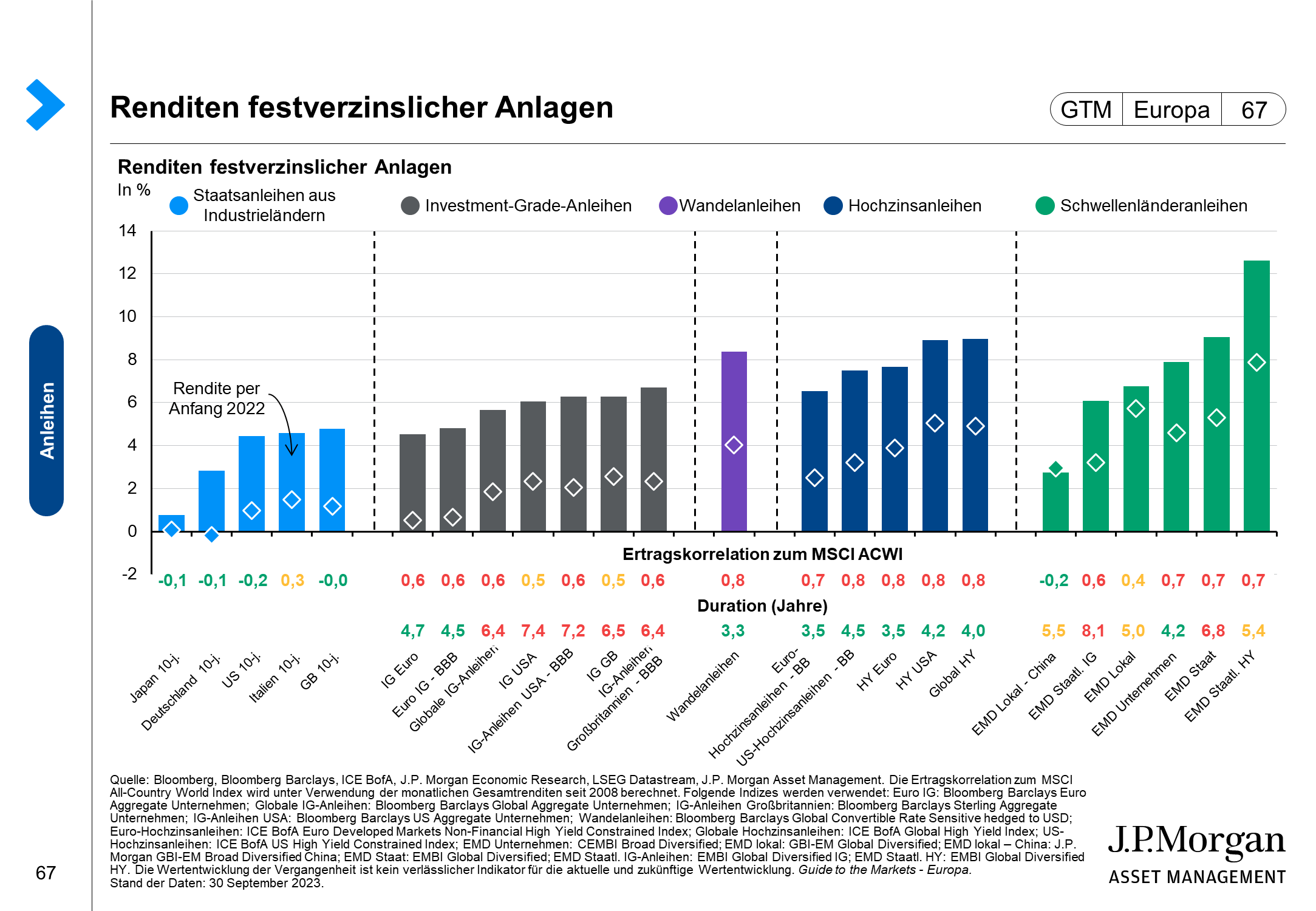 Auch hier können wir uns auf Kernanleihen verlassen, um Portfolioerträge zu erzielen und uns vor disinflationären Schocks zu schützen (Seite 70).